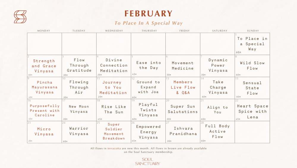 This month, we invite you to explore what it feels like to move with intention, to breathe with awareness, to turn inward and listen and to place yourself - again and again - in alignment with what feels true. As we flow into February together, consider this an invitation to slow down, look inward, and reconnect with the intention beneath your actions. Whether on the mat or in the midst of everyday life, may this beautiful practice remind you that purpose isn’t something you need to search for, it’s something you return to with each moment and each practice; and sometimes, all it takes is placing one thing - one step, one choice, or breath - in a special way.
